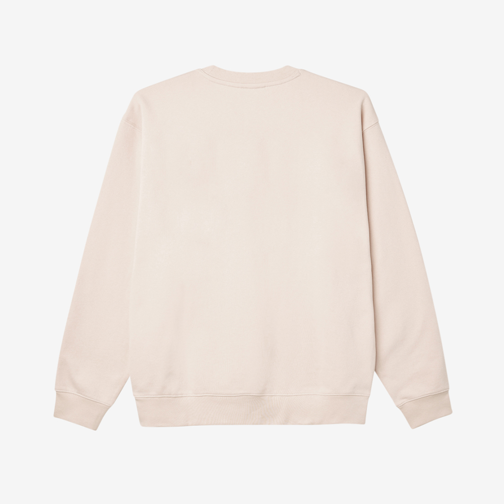 heavyweight crew sweatshirt. brushed back fleece. embroidered graphic at chest. rib knit cuffs and hem. obey logo embroidery at left cuffs. 58% cotton 42% polyester. 14 oz.