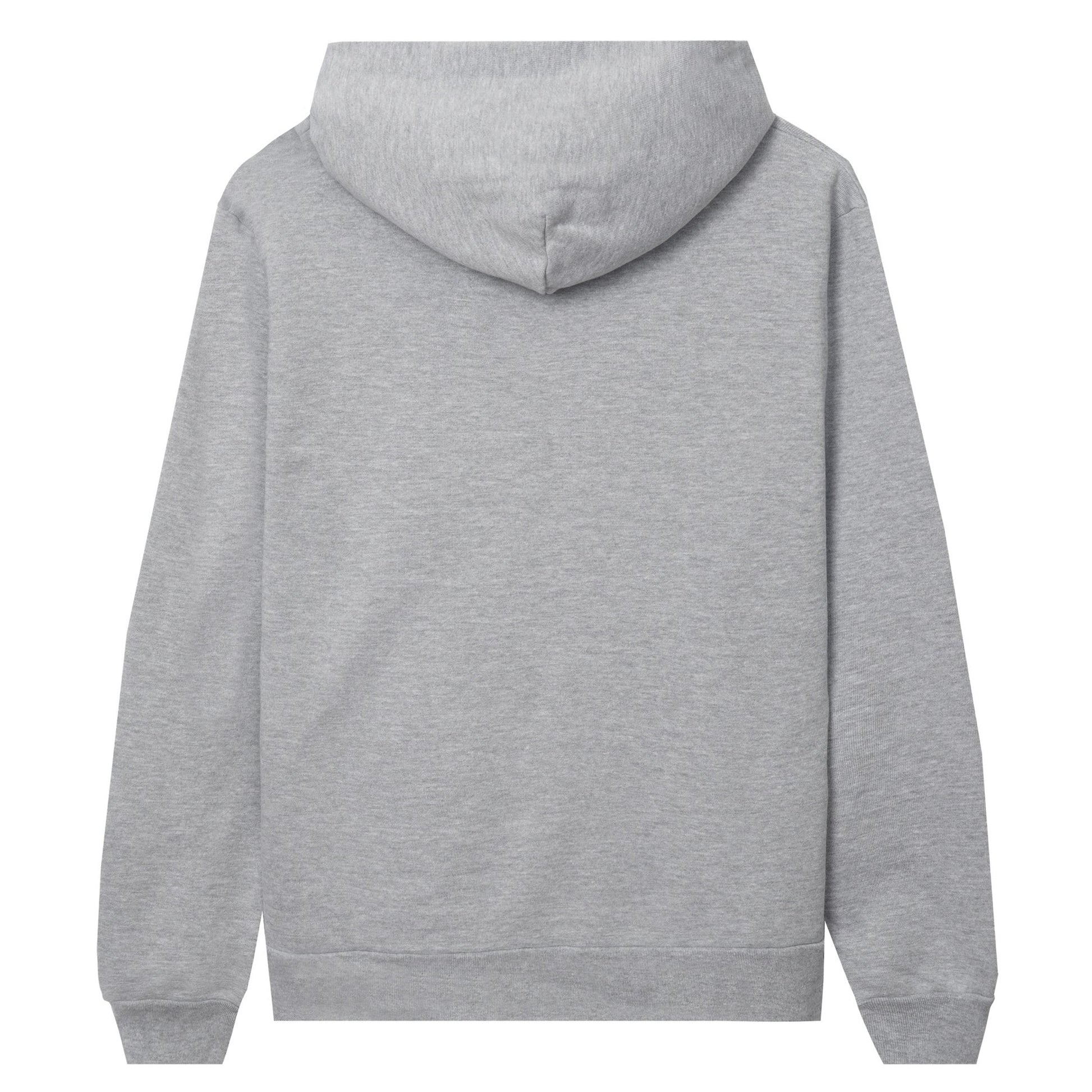 Heavyweight Cotton (14 oz) Custom Hooded Fleece. Screen printed and embroidered chest graphic. Made in USA.