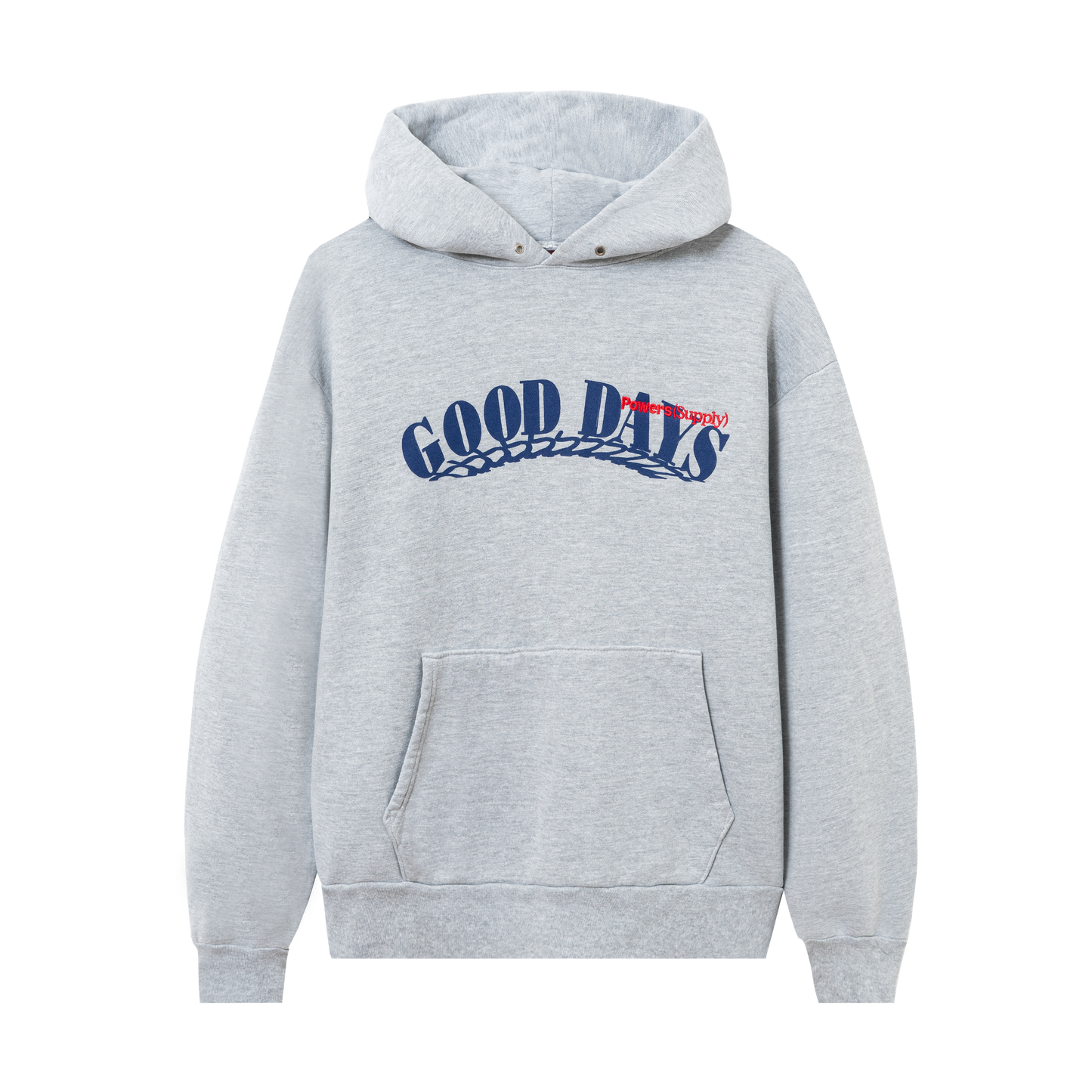 Heavyweight Cotton (14 oz) Custom Hooded Fleece. Embroidered chest graphic. Made in USA.