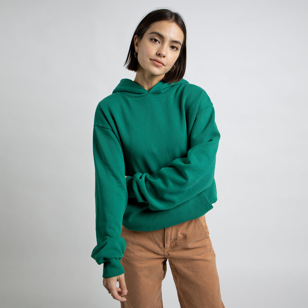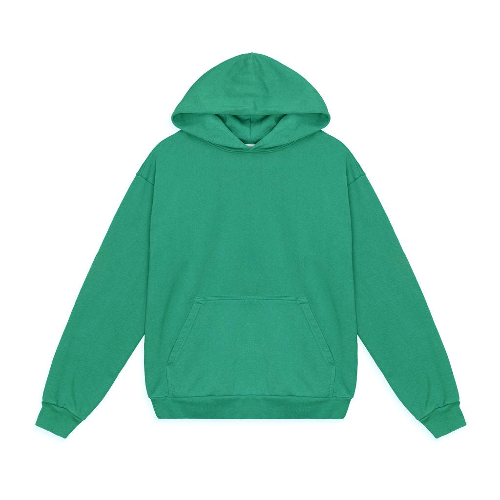 Pre-shrunk. Fits true to size. Size up for a looser fit. Male model is 5'10" 150 lbs wearing a size M Female model is 5'5" 110 lbs wearing a size S DETAILS 100% Cotton 500gsm Machine wash cold with like colors, tumble dry low Imported A premium, garment-dyed, 100% cotton, midweight hoodie. Featuring a tonal puff print Simple oval logo on the back.